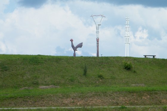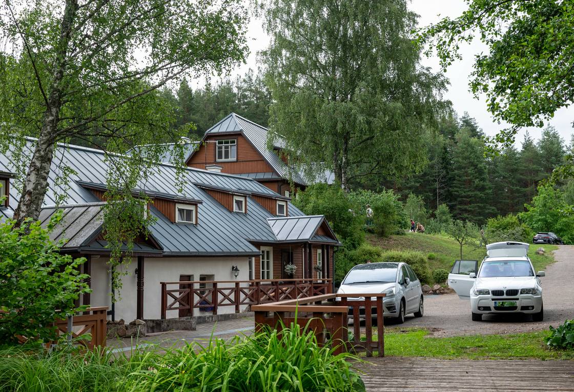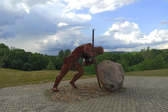Palūšė - Antalksnė. The route starts at Aukštaitija National Park Visitor Centre. Go left from the parking lot. Then, turn right after passing a shop. In the Pašakarvio Street, Šilinė village, the road makes a sharp left turn. Near the forest, the gravel road turns into a forest path. Go along this road towards Šakarva campsite. Keep going further, and after 50 m, you will reach asphalted road. Turn right, and pass over the Šakarva village. Shortly, you will reach a crossroad where you should take the right turn, towards Kirdeikiai. After 4.3 km in Kaukiškė village, you will see a resting place lot. After another 1.5 km from the Kaukiškė at a crossroad turn right to the village Antalksnė. There are three sculptures on a hill near the crossroad. After approximately 0.5 km you will reach Antalksnė.
