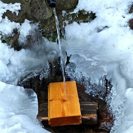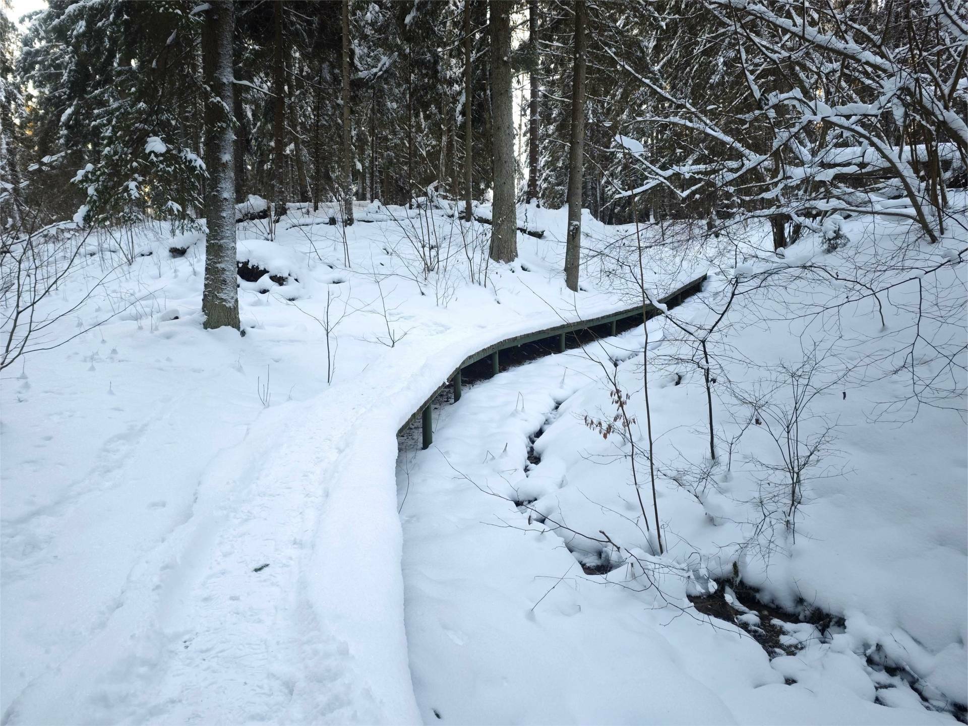 To the north of Lake Dringis, in a picturesque place, the Medžiukalnis spring gushes. The source of the spring is approximately 155–160 m above sea level. A sign erected near the spring says that people have known about the Medžiukalnis spring for a long time, and that the microclimate and humidity here have led to the formation of specific vegetation. It is believed that the water of this spring has a lot of positive energy. Thanks to the employees of the Aukštaitija National Park, the access to the spring has been beautifully arranged, paved with field stones, and a wooden path has been laid from the road to the spring. Nearby there is a gazebo, table, benches, where you can sit in the shade of trees and refresh yourself with spring water.