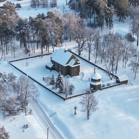 Cultural monument, 18th century second half folk architecture ensemble. It stands on a high hill, near Lake Lūšiai. Pastor of Adutiškis Juozapas Stockis Baziliauskas (Bazilevskis) in 1747 on the land inherited from his parents began to build at his own expense St. Joseph's Church. Construction was completed in 1757. (other sources - 1750). Built of pine trunks, with an ax only, without the use of a saw. 1815-1830 the church has been renovated. 1841 the church building is newly clad with boards. In the end of 19th century a chapel was built in the cemetery. Later, the church was repeatedly renovated, so the interior of the church is very different from the original planning and decor. 1885 a baroque-style organ was built. Jonas, the father of Cyprus and Mikas Petrauskas, was the organist. 1994 the church was restored with state funds. 1999 the organ, which was played by the father of Cyprus and Miko Petrauskas more than a hundred years ago, was reconstructed. The church, the belfry, the chapel and the wooden fence surrounding the cemetery form an ensemble of wooden architecture. Inside there are valuable works of folk art - paintings on the board, carvings, brass bells, decorated with baroque ornaments, cast in 1752 and 1772.