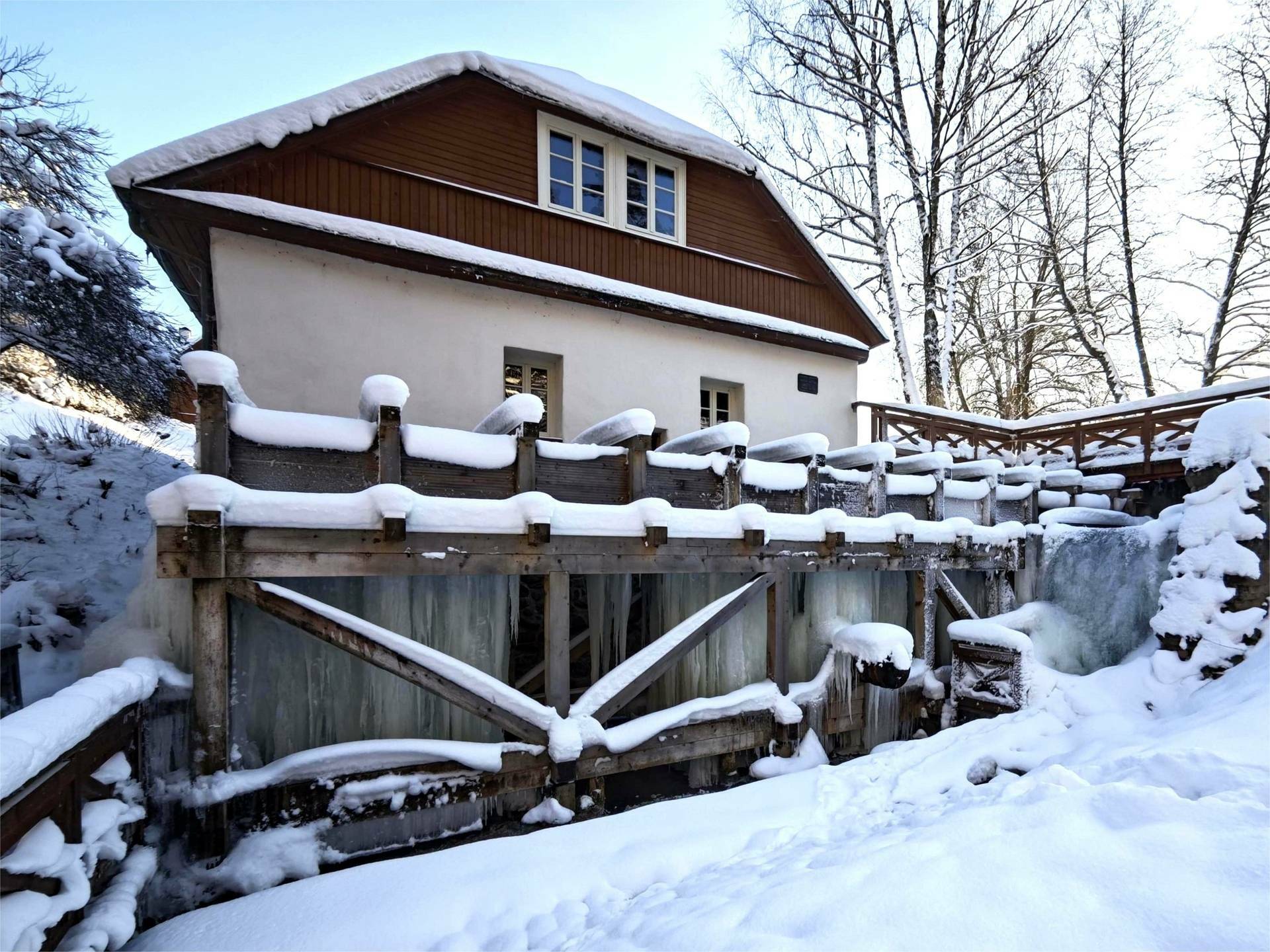 Legendomis apipintas vienaaukštis malūnas pastatytas XIX amžiuje, stovi prie Palaukinio upelio, Gaveikėnų kaimo pietrytinėje dalyje, pamiškėje visai netoli kelio Ignalina – Ginučiai. Šalia malūno rasite užtvanką su tiltu, čia dažnai atvyksta maudytis poilsautojai. Malūno pastatui tautodailininkas Teofilis Patiejūnas išdrožė keletą velnių skulptūrų. 1978 m. šis malūnas įtrauktas į Kultūros vertybių registrą.