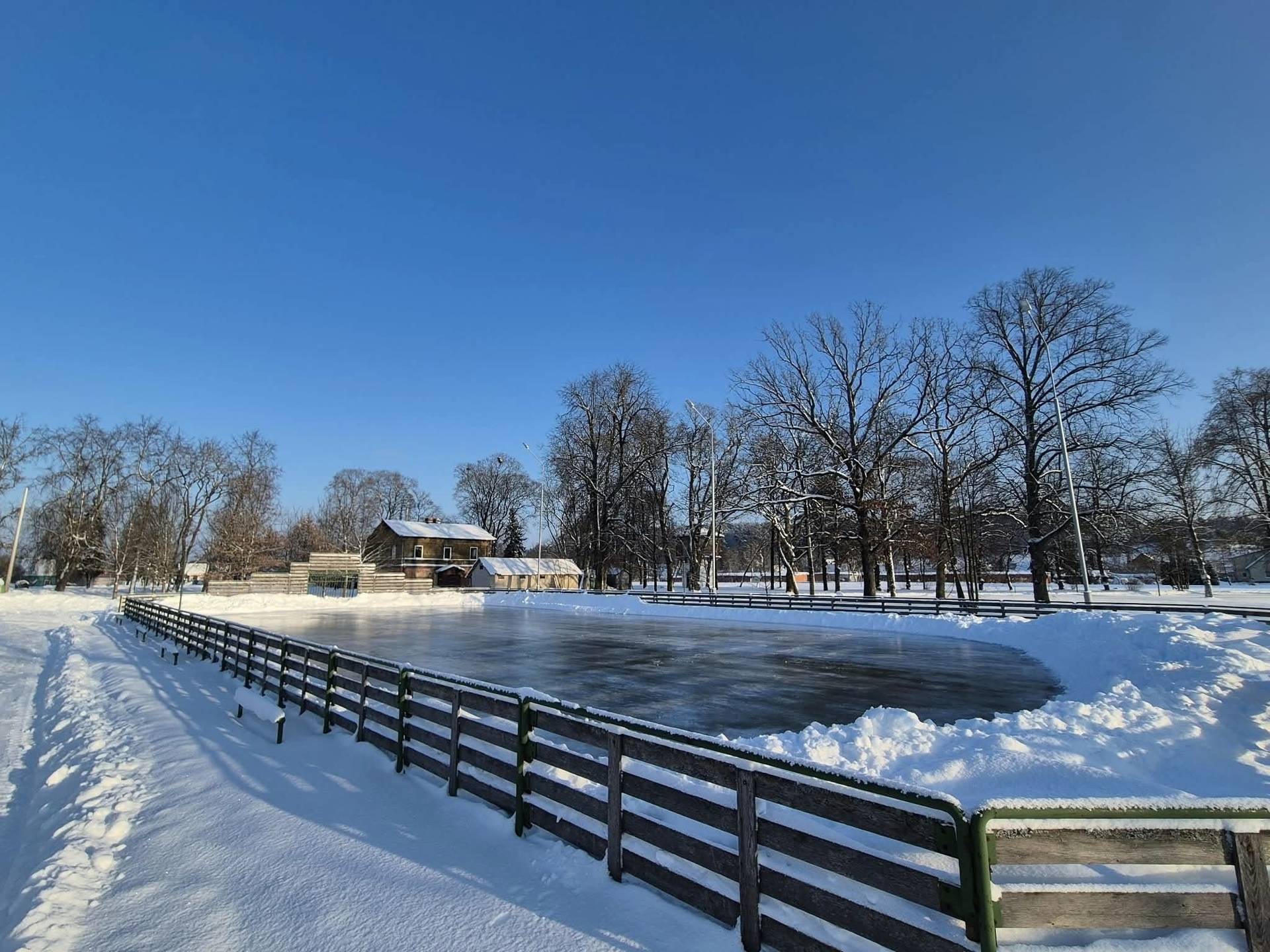 Smagus šaltukas vėl padėjo Ignalinos miesto seniūnijai įrengti čiuožyklą – lyg stiklas lygią, pramogauti kviečiančią.