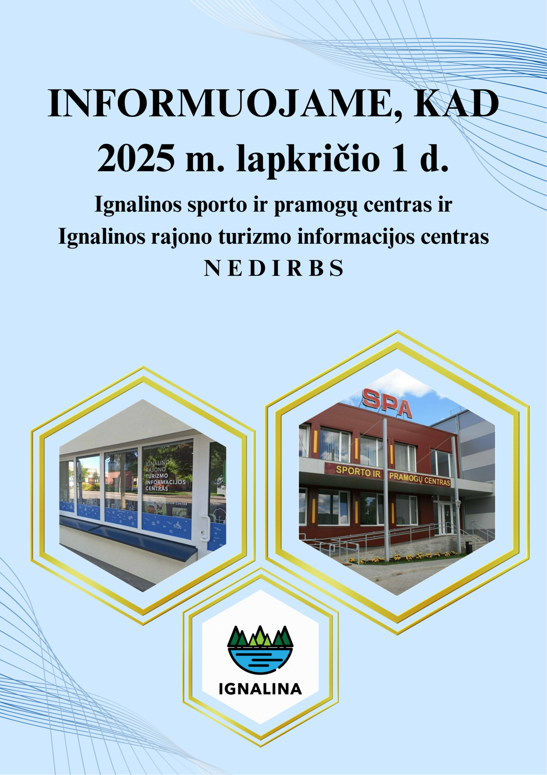 - Ignalinos sporto ir pramogų centras nedirbs;