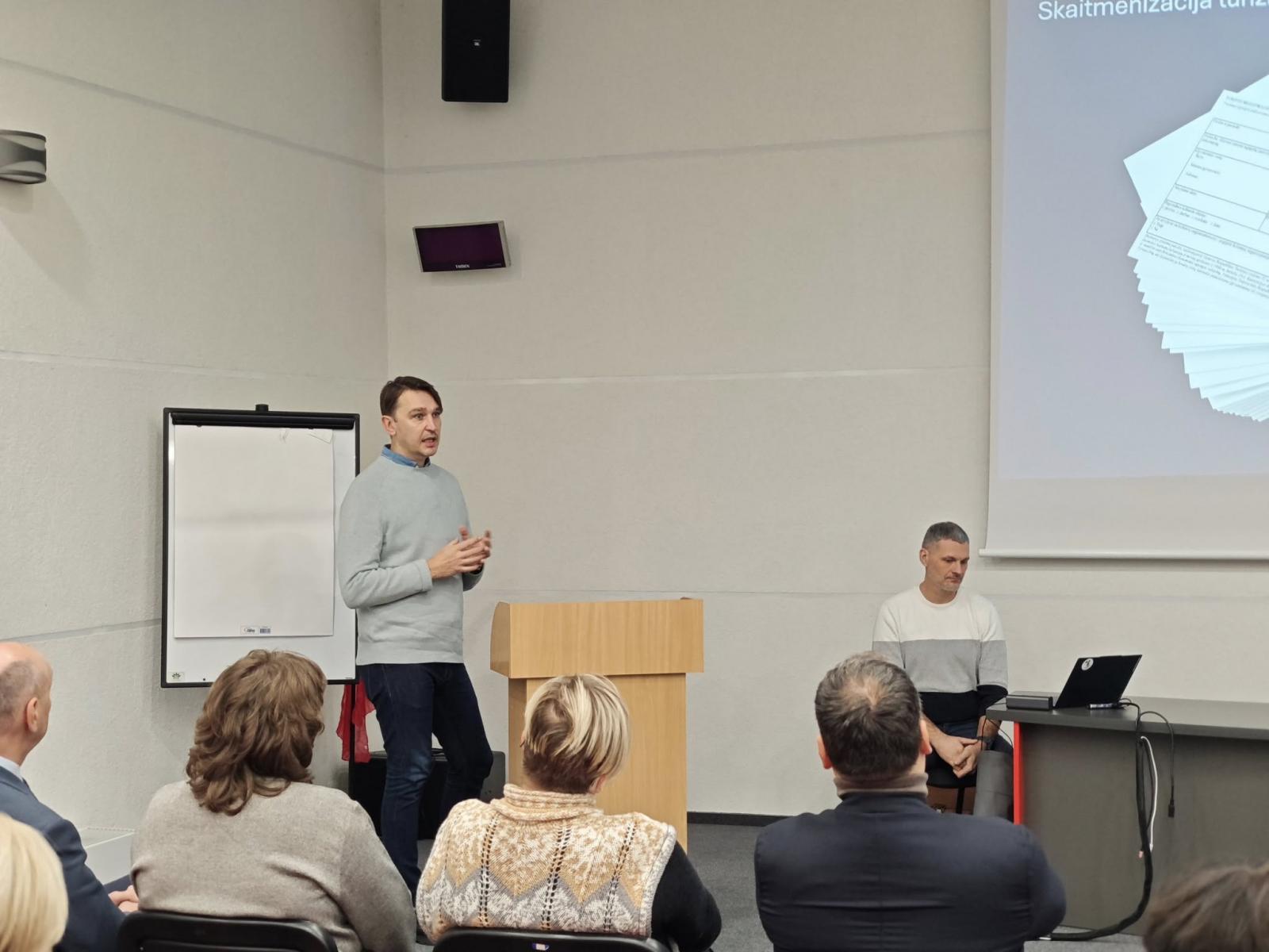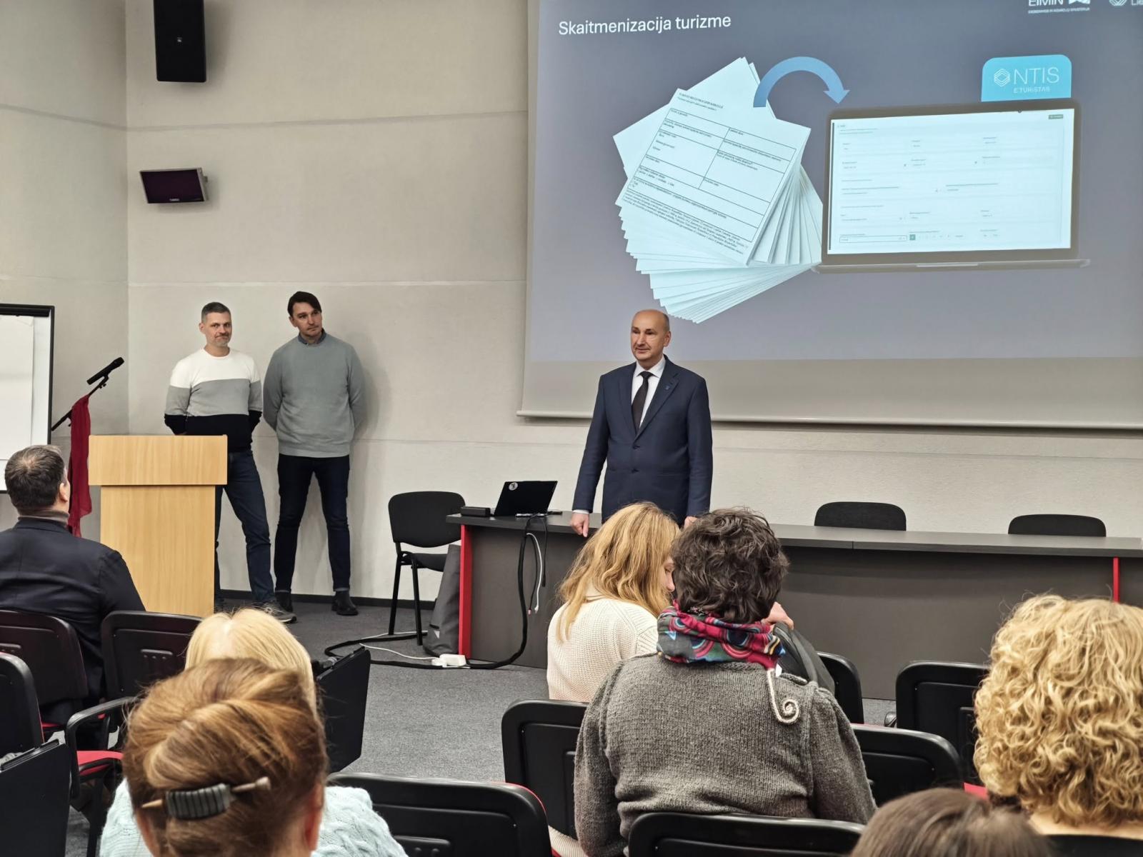 VšĮ „Keliauk Lietuvoje“ atstovai Paulius Butkus ir Rimvydas Kaminskas mokymų dalyviams pristatė turistų registravimo tvarką, prisijungimo bei darbo su „E. turistas“ sistema principus, privalomus rinkti duomenis, BDAR reikalavimus bei galimą administracinę atsakomybę.