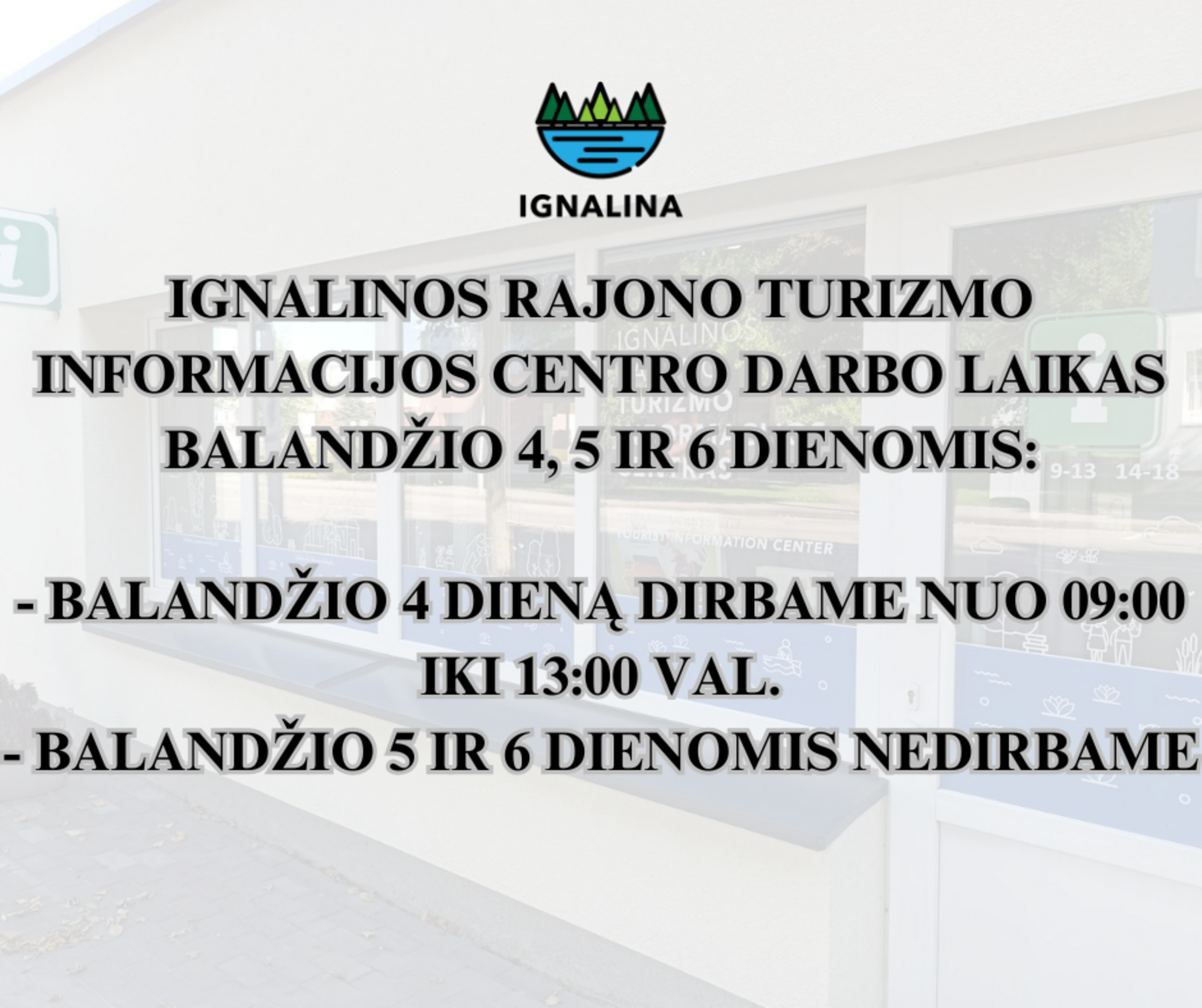 IGNALINOS RAJONO TURIZMO INFORMACIJOS CENTRO DARBO LAIKAS BALANDŽIO 4, 5 IR 6 DIENOMIS:
