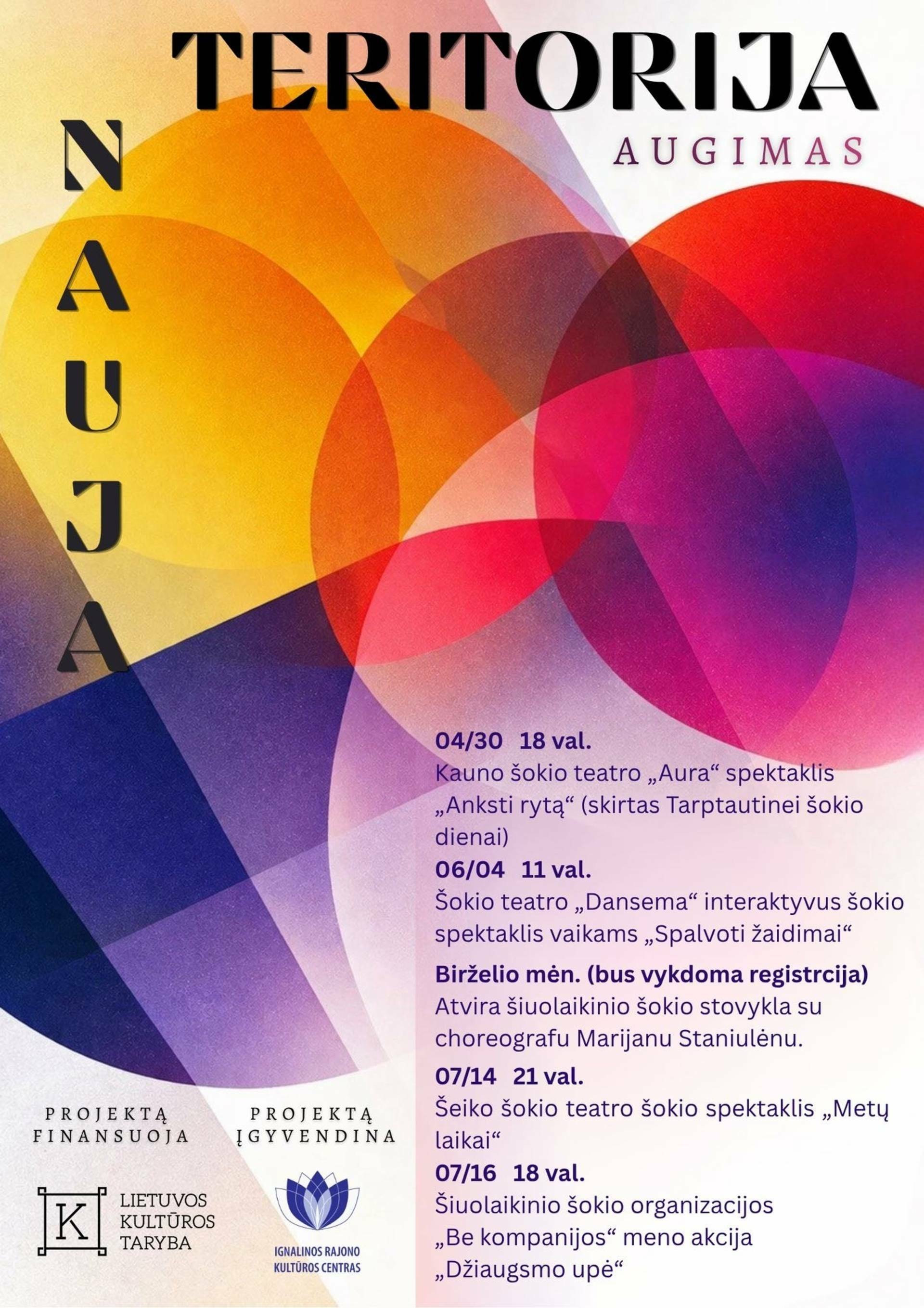 „Nauja teritorija. Augimas“ taps erdve, kurioje susitiks profesionalus menas ir vietos kūrybinė bendruomenė. Projekto metu planuojama ne tik pristatyti aukštos meninės vertės šiuolaikinio šokio kūrinius, bet ir įtraukti gyventojus į aktyvias kūrybines veiklas, stiprinant jų ryšį su šiuolaikine kultūra.