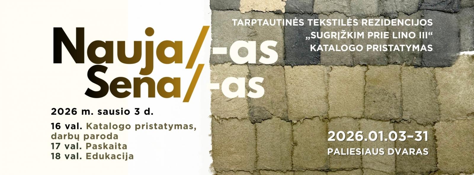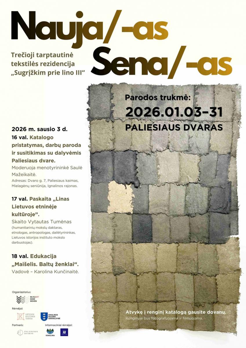 Sausio 3 d. nuo 16 val. Paliesiaus dvare (Ignalinos r.) kviečiame į trečiosios tarptautinės tekstilės rezidencijos „Sugrįžkim prie lino“ katalogo „Sena/-as Nauja/-as“ pristatymą. Renginio metu atidaroma tekstilės darbų paroda, vyks paskaita, edukacinė veikla, o erdvę užpildys klasikinės muzikos garsai.