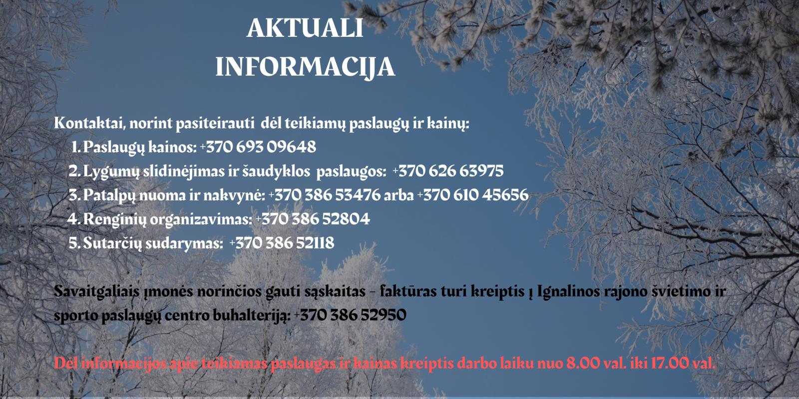 Naujausią informaciją sekite Lietuvos žiemos sporto centro Facebook puslapyje https://www.facebook.com/LietuvosZiemosSportoCentras