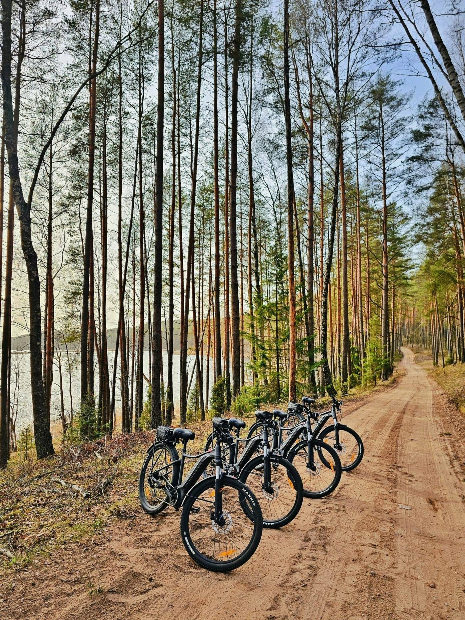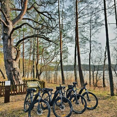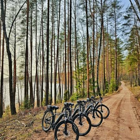 Mes jums siūlome 16 įvairių dydžių elektrinių dviračių (4 vidutiniai, 9 dideli, 3 labai dideli), kiekvienas dviratis aprūpintas krepšeliu asmeniniams daiktams sudėti ir telefono laikikliu. Siekdami praturtinti kelionę aplink Aukštaitijos nacionalinį parką, klientams siūlome pasirinkti iš 5 skaitmeninių žemėlapių:
