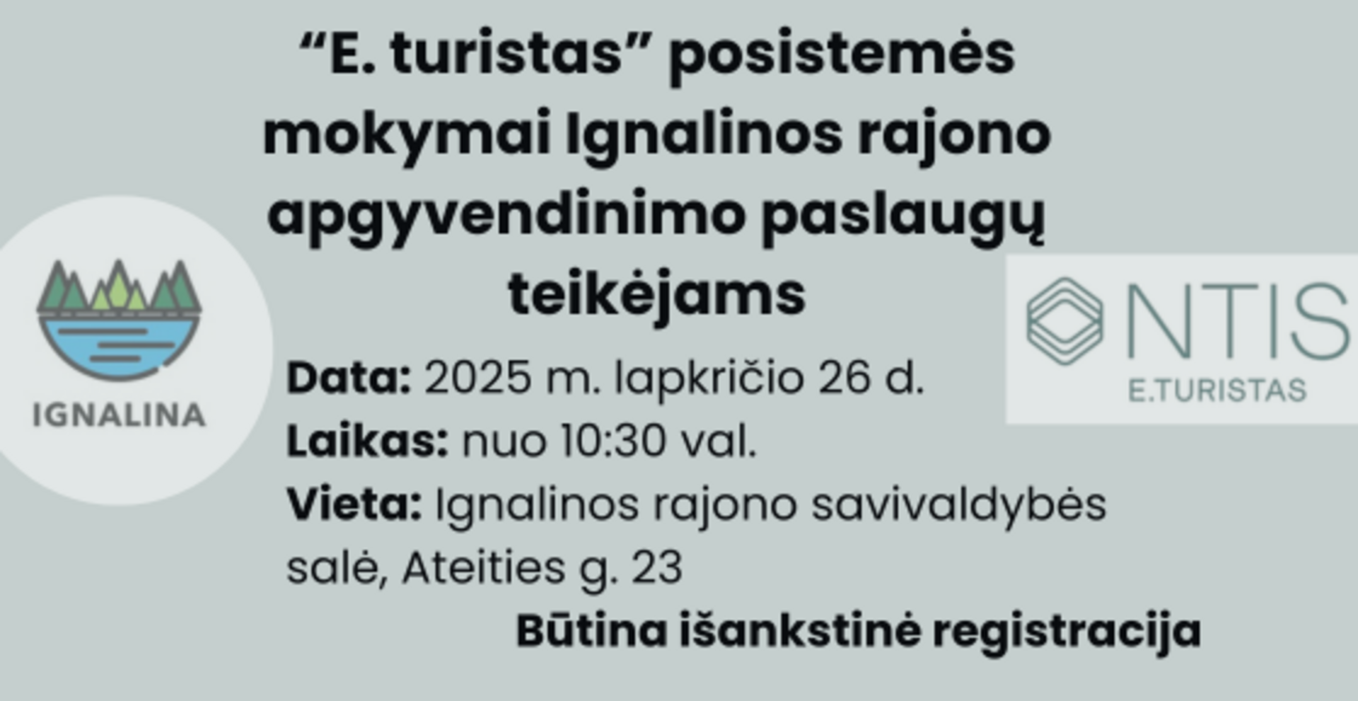 Nuo 2025 m. sausio 1 dienos įsigaliojo naujas turistų registracijos skaitmeninimo reikalavimas. Siekdami padėti apgyvendinimo paslaugų teikėjams, lapkričio 26 d. 10:30 val. kviečiame į mokymus, kuriuose turėsite galimybę susipažinti su NTIS posistemės „E. turistas“ naudojimu.
