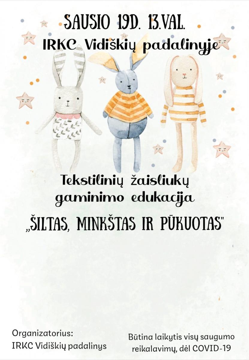 Edukacijos metu išmoksite gaminti žaislus iš įvairių tekstilės gaminių. Edukaciją ves IRKC Vidiškių padalinio saviveiklininkai.