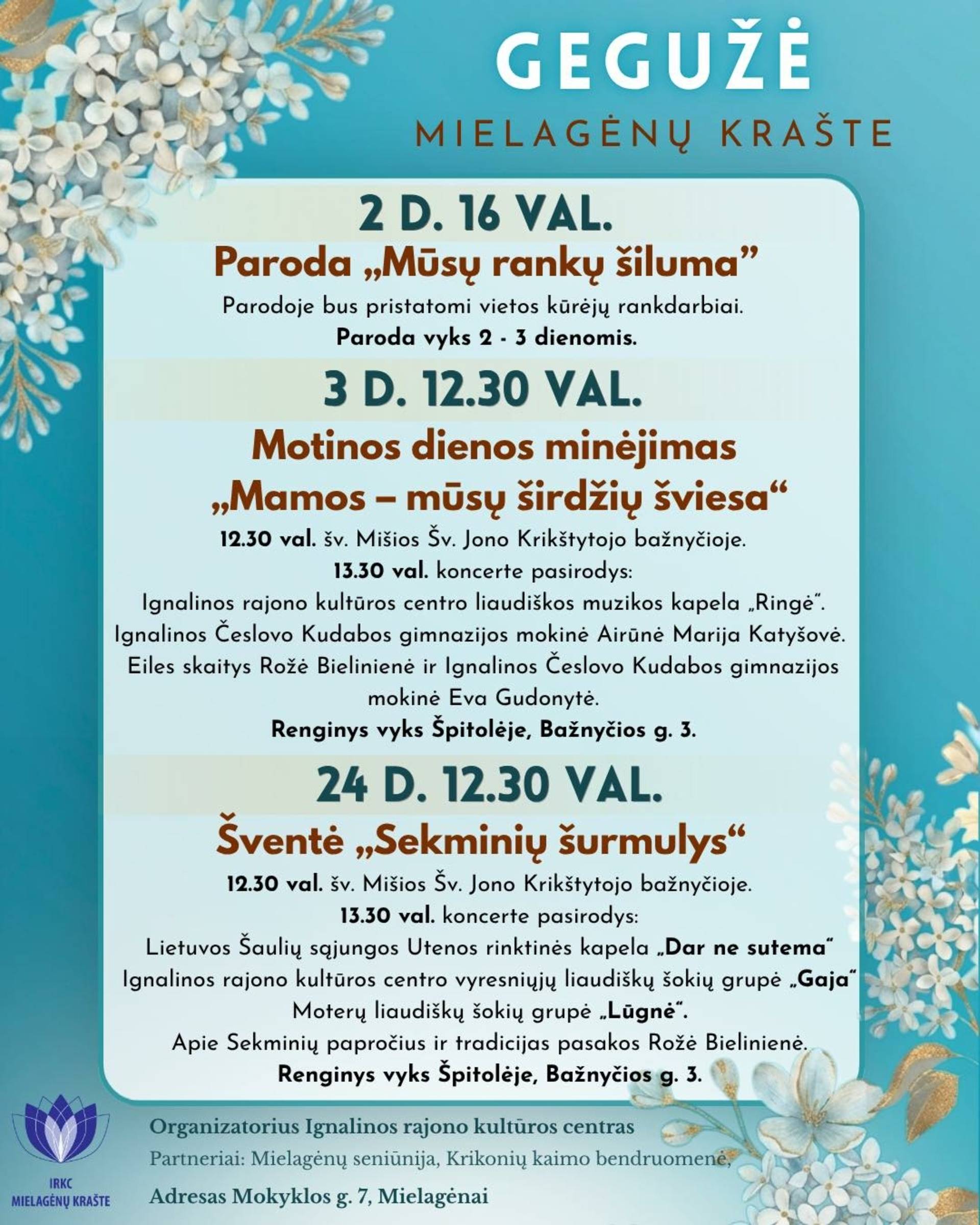 Gegužės mėnesio renginiai Mielagėnų krašte