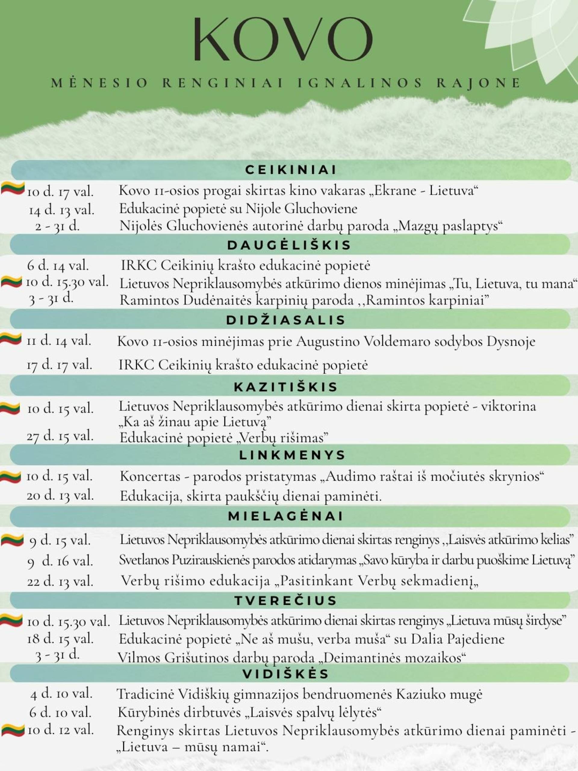 Kovo mėnesio renginiai Ignalinos rajone