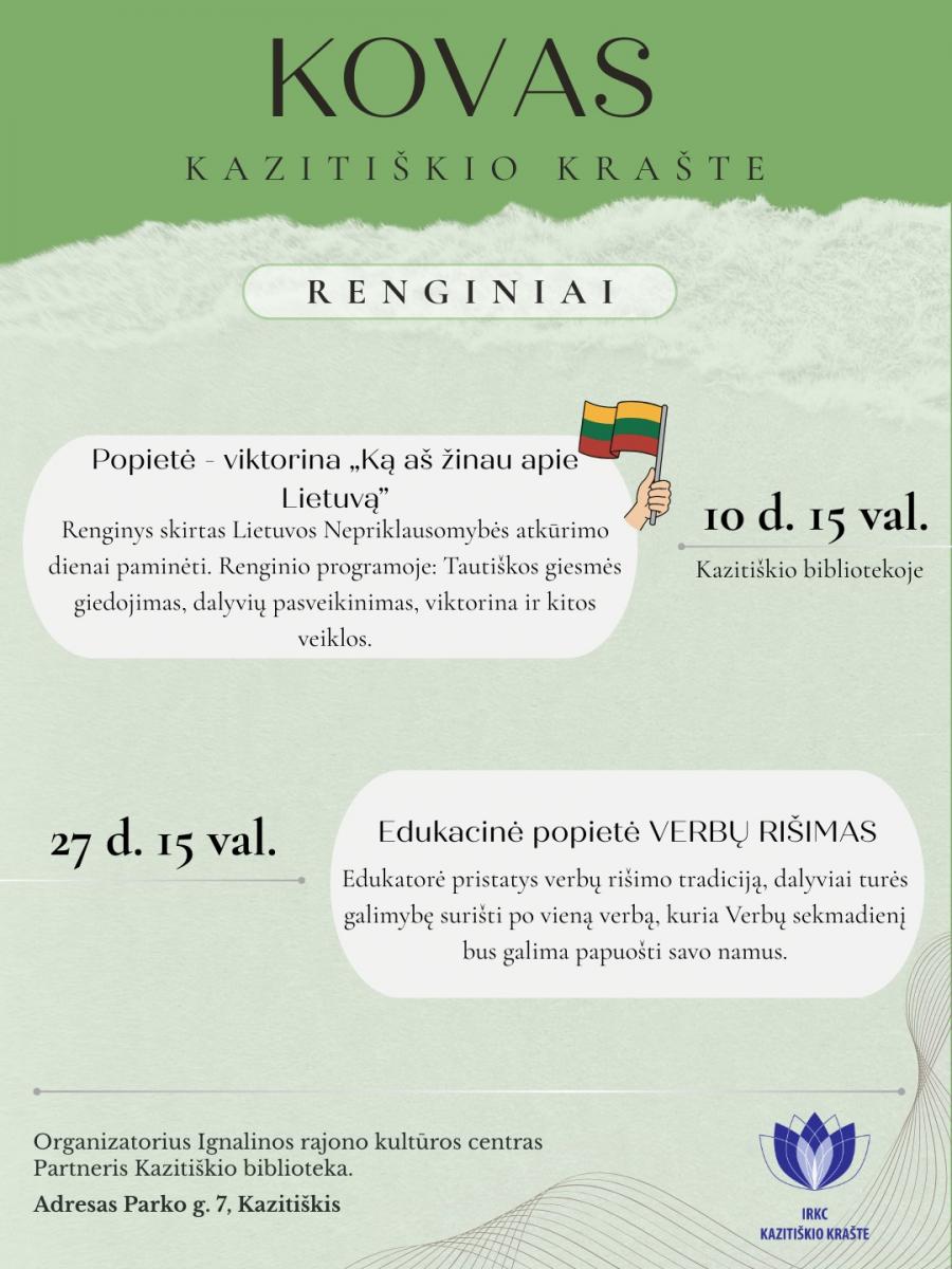 Renginiai Ignalinoje ir filialuose 2026 m. kovo mėnesį
