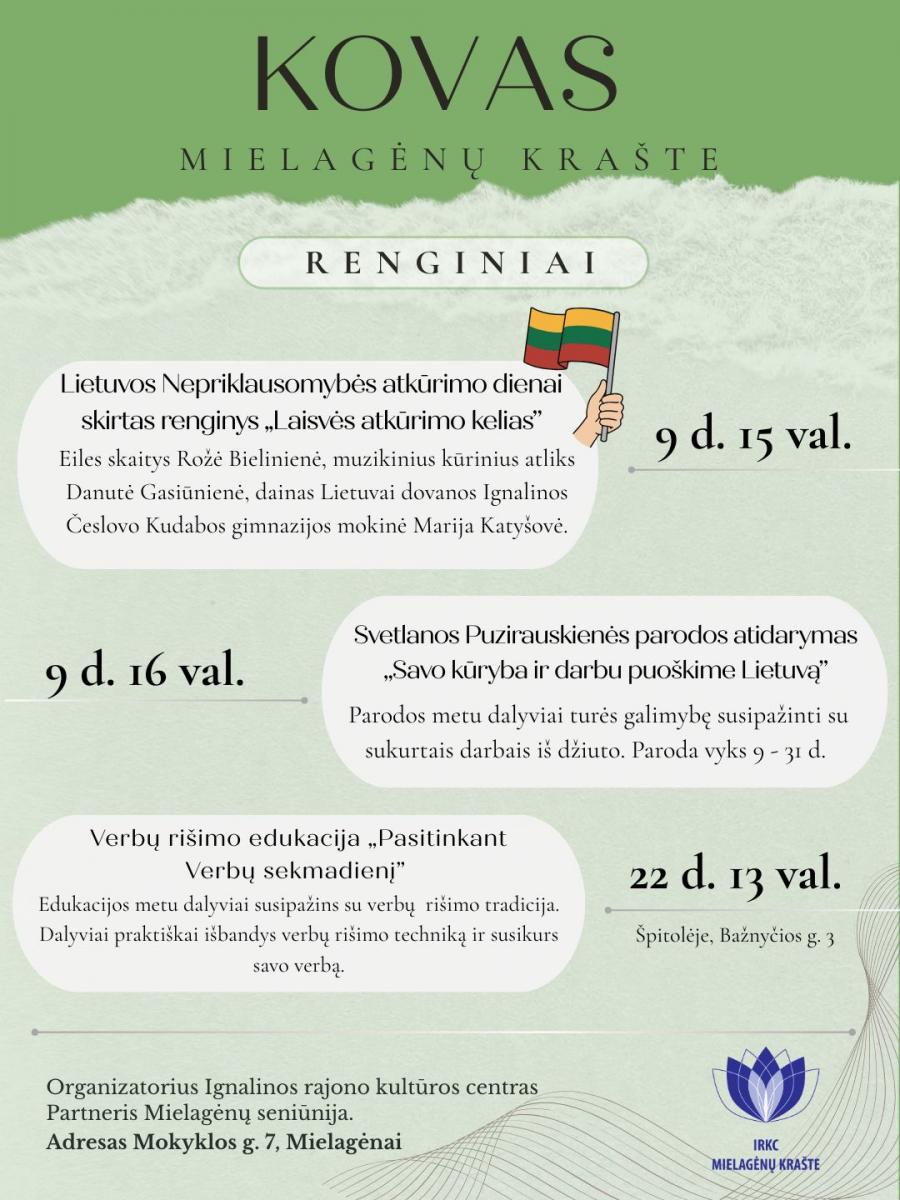 Kovo mėnesio renginiai Mielagėnų krašte