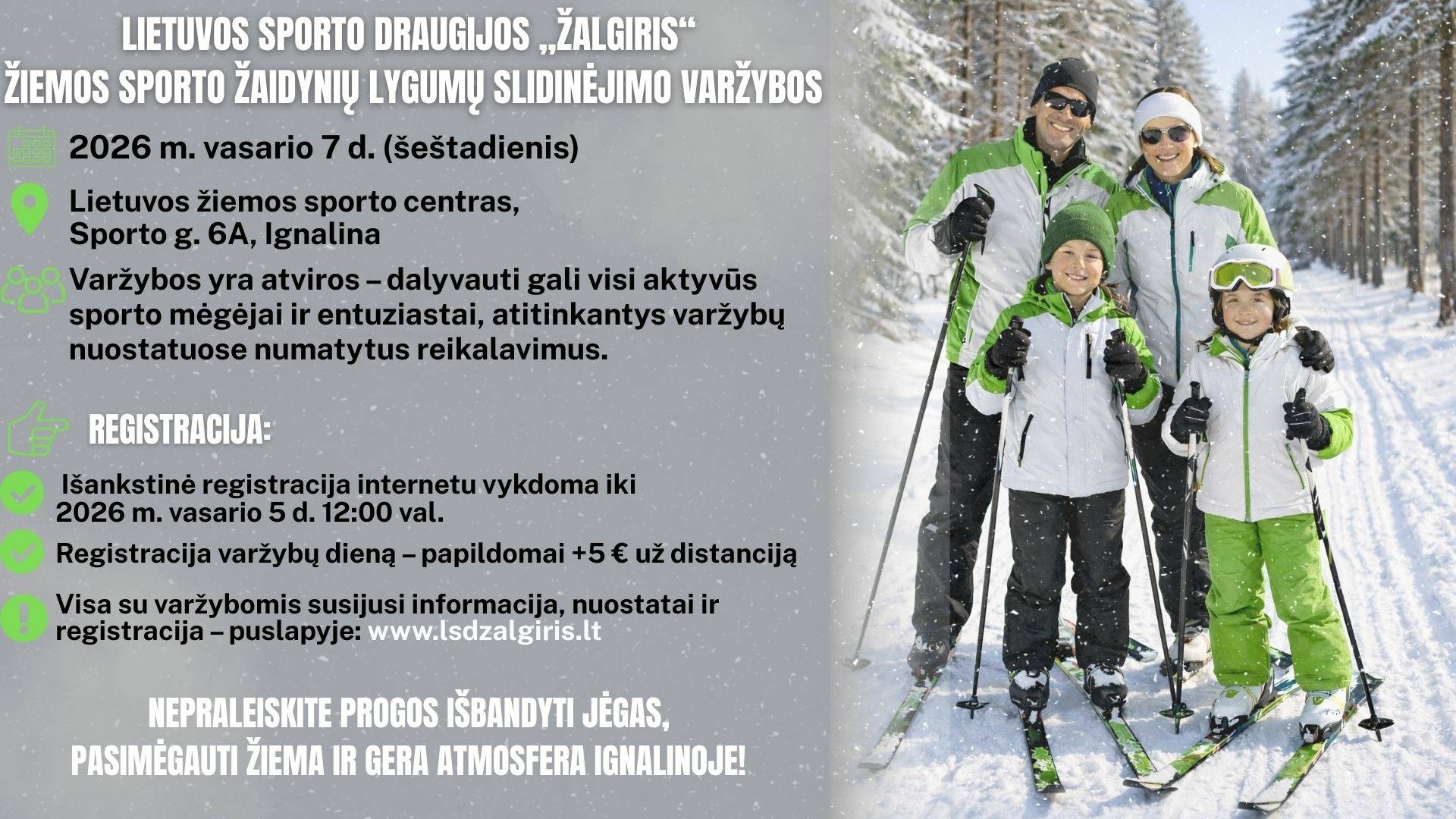 Kviečiame visus žiemos sporto mylėtojus, šeimas, draugų kompanijas ir aktyvaus laisvalaikio entuziastus susitikti Ignalinoje ir kartu pasimėgauti lygumų slidinėjimo švente. Tai puiki proga išbandyti savo jėgas, praleisti laiką gryname ore bei patirti tikrą žiemos sporto atmosferą. Prisijunkite ir tapkite šios sporto šventės dalimi! ![]()
