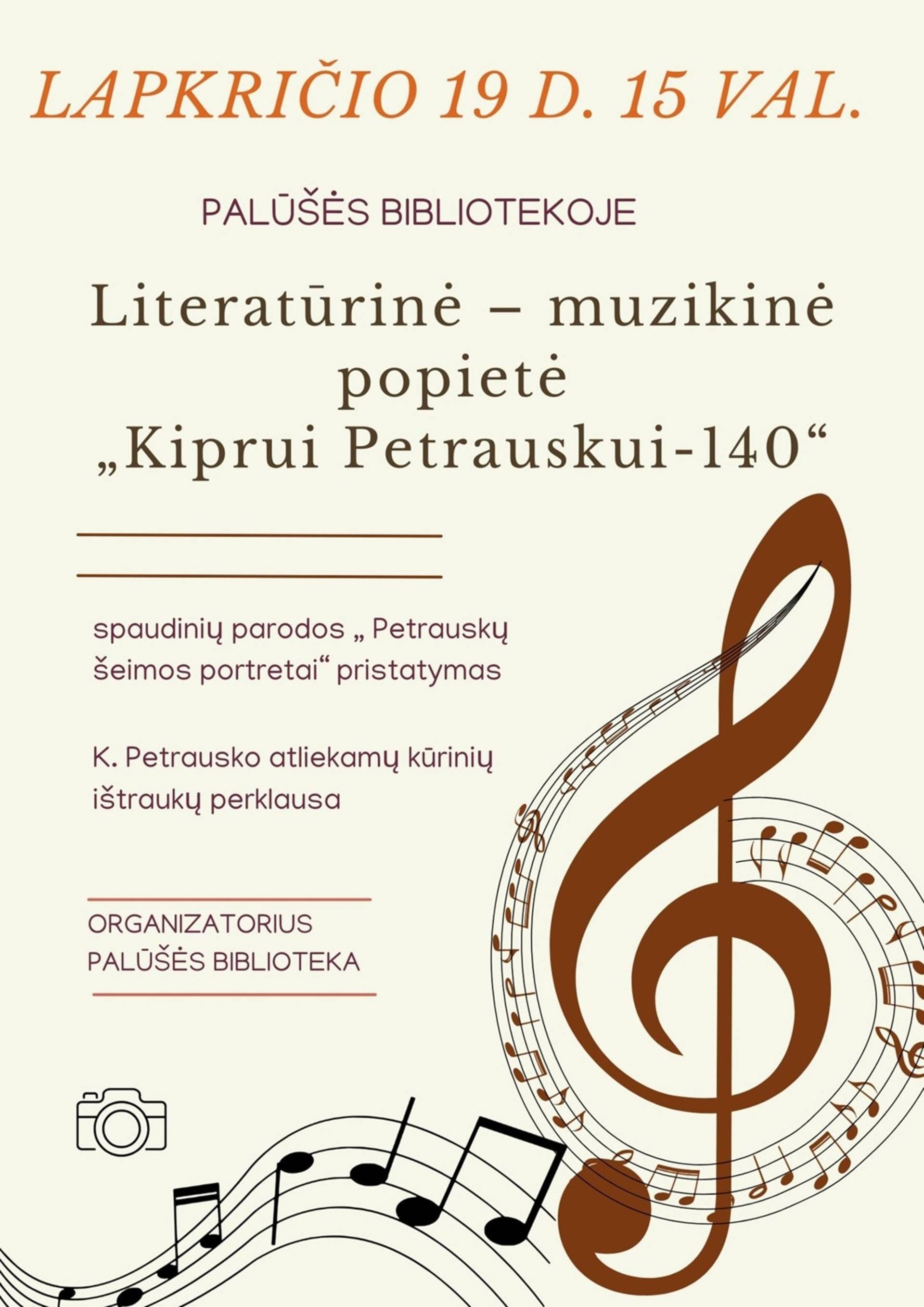 Literatūrinė-muzikinė popietė "Kiprui Petrauskui-140"