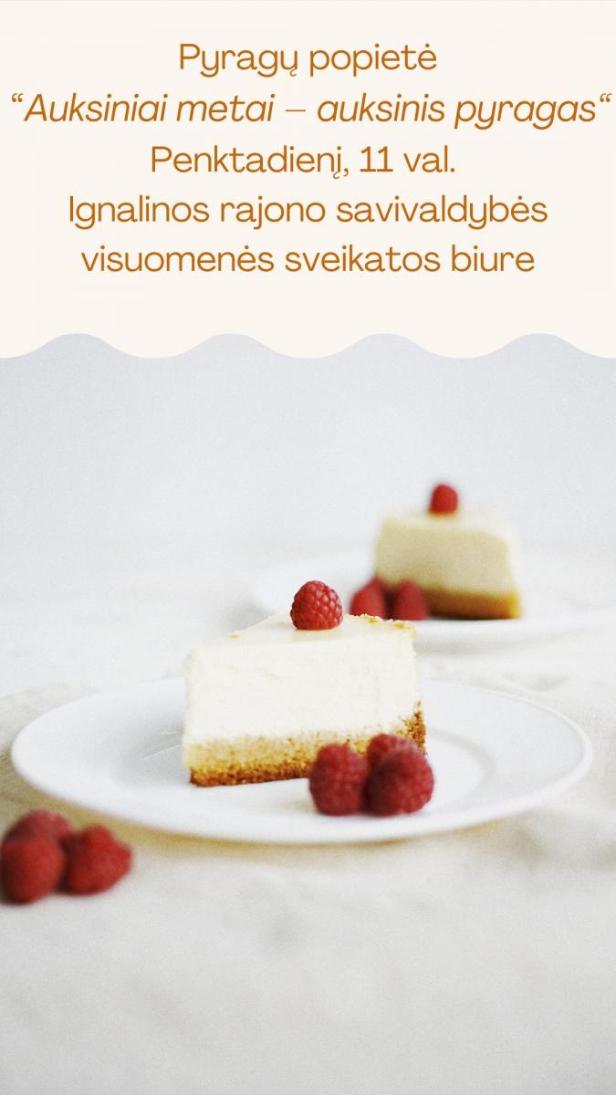 Minint Tarptautinę pagyvenusių žmonių dieną, kviečiame visus – ir jaunus, ir vyresnius – į jaukią pyragų popietę! Atsineškite savo gamybos „auksinį“ pyragą – tą, kuris Jums brangus, gardus ar tiesiog primena šiltus prisiminimus. O jei pyrago neturite – nenusiminkite! Ateikite šiltam arbatos puodeliui, pokalbiui ir bendrystei. Lauksime Jūsų su šypsena ir gera nuotaika!