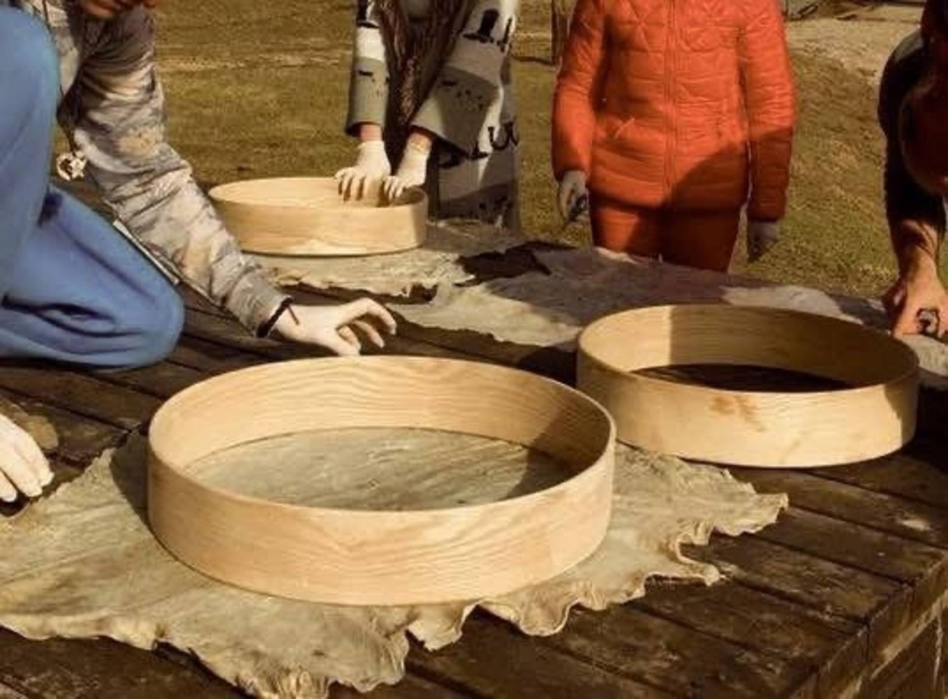 Paruošite sulenktus rėmus odos tempimui, tempsite odą ir pasigaminsite individualias būgnų lazdeles.