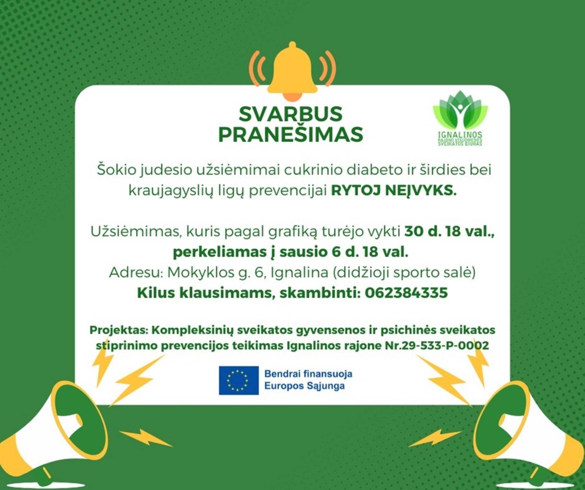 Šokio judesio užsiėmimai cukrinio diabeto ir širdies bei kraujagyslių ligų prevencijai