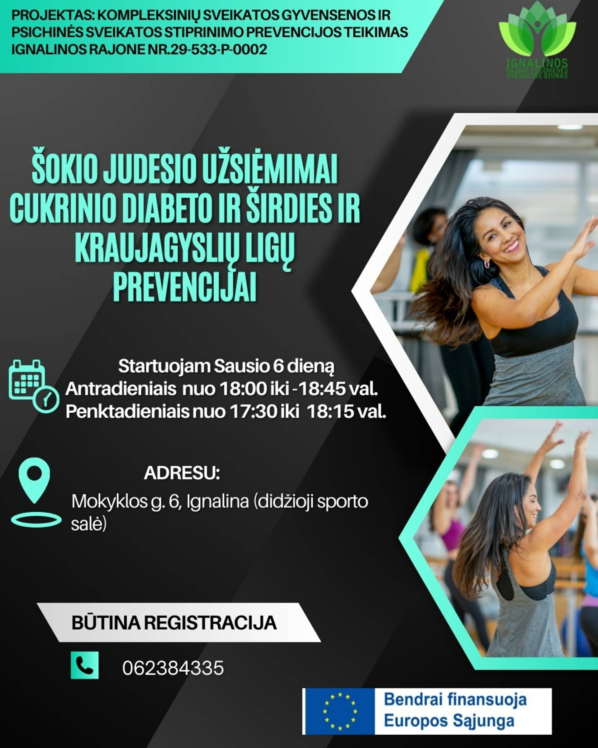 Šokio judesio užsiėmimai cukrinio diabeto ir širdies ir kraujagyslių ligų prevencijai