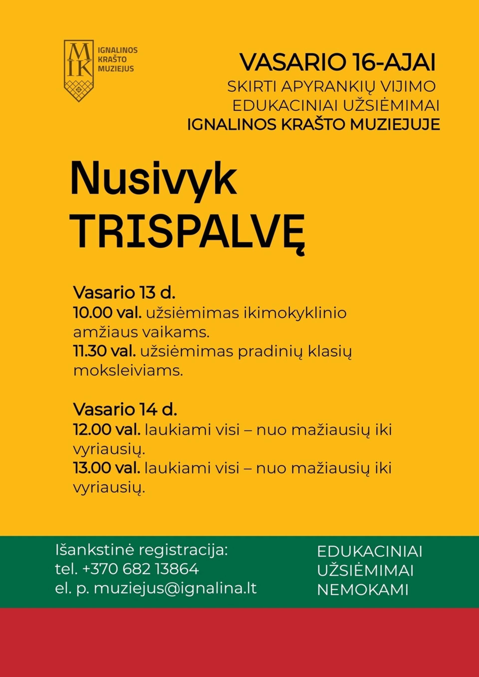 Vasario 13 ir 14 dienomis Ignalinos krašto muziejuje vyks spalvinga apyrankių vijimo edukacija „Nusivyk trispalvę“.