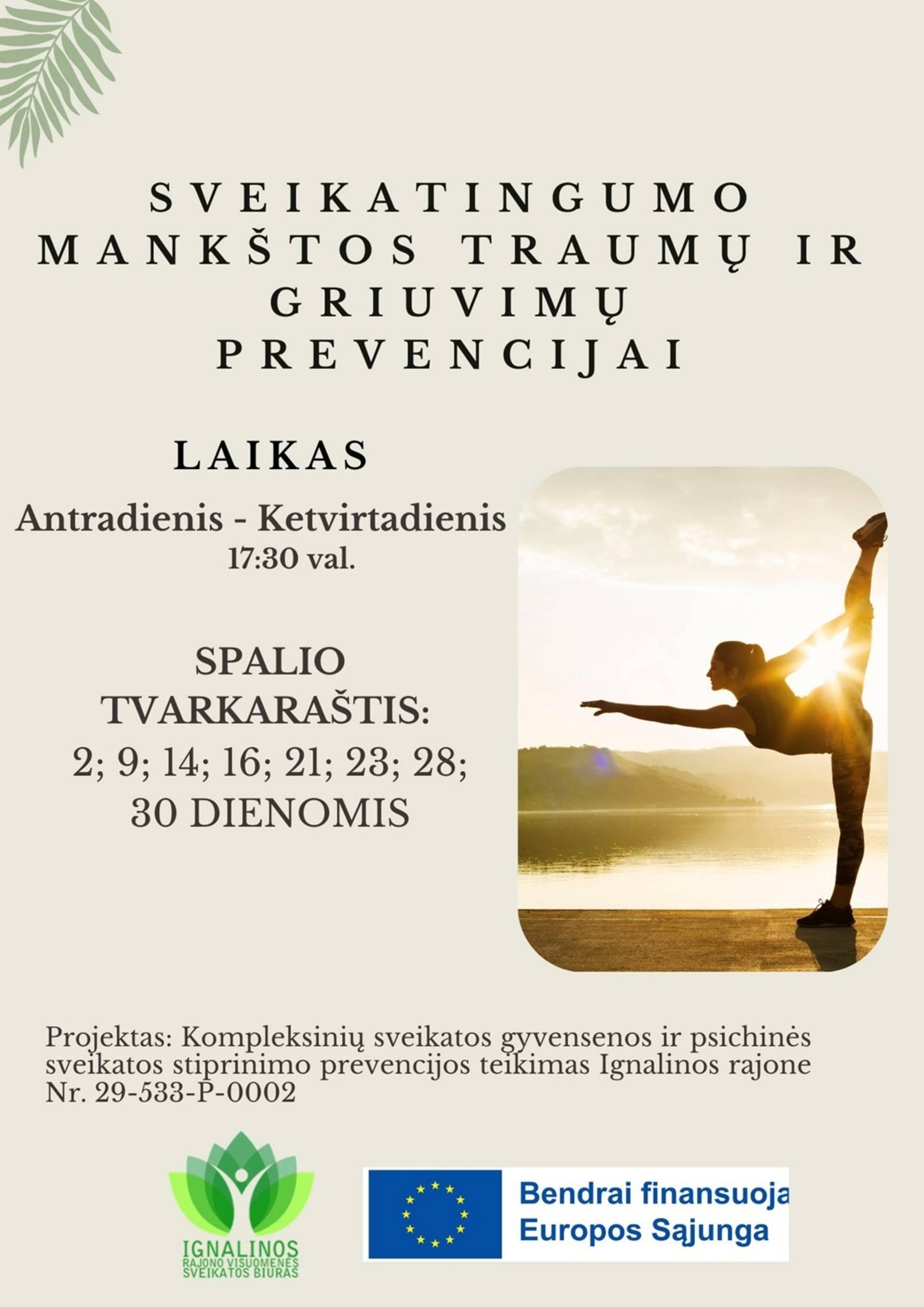 Ignalinos rajono visuomenės sveikatos biuras kviečia į sveikatingumo mankštas, skirtas traumų ir griuvimų prevencijai.