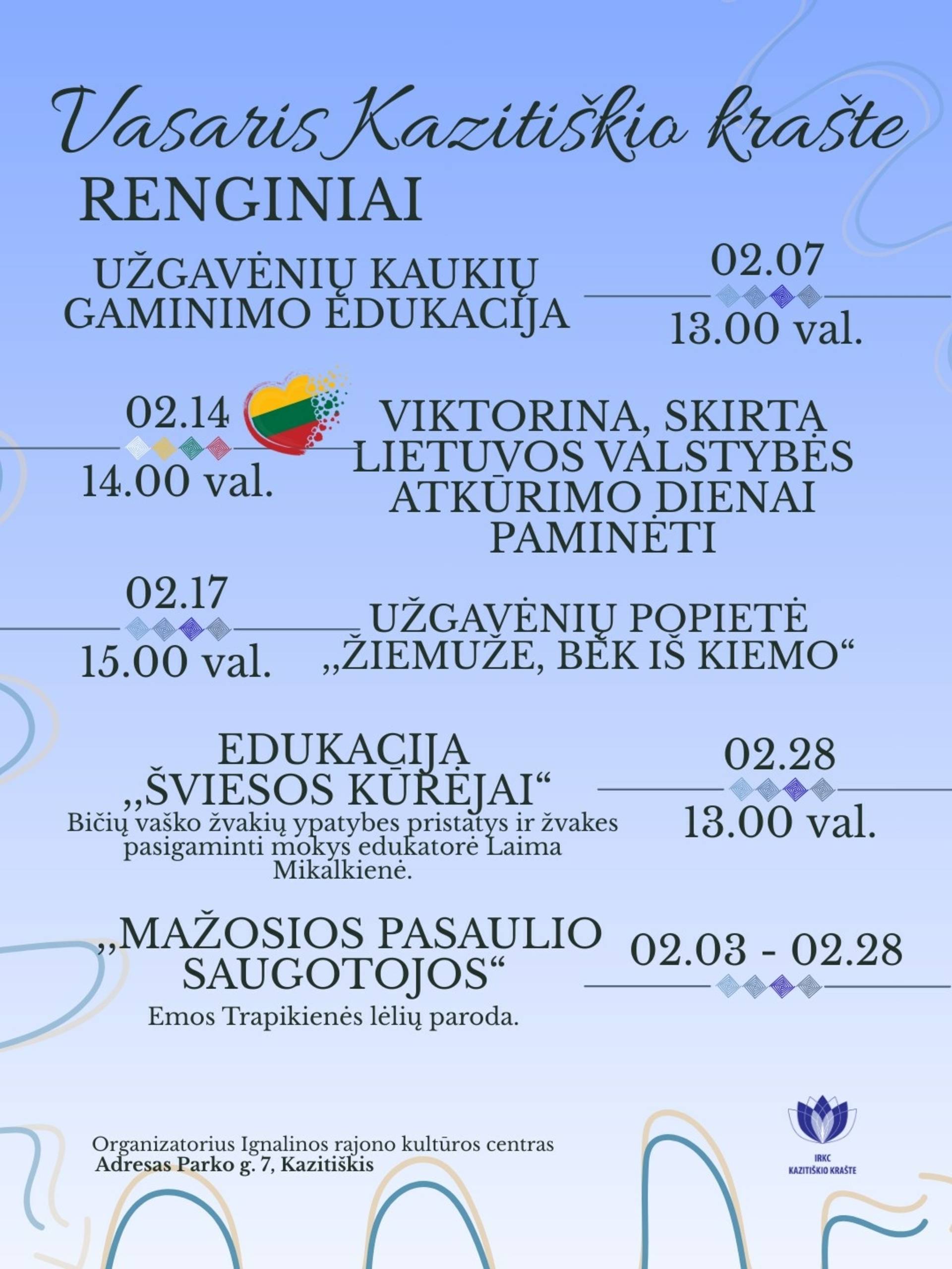Vasario mėnesio renginiai Kazitiškio krašte