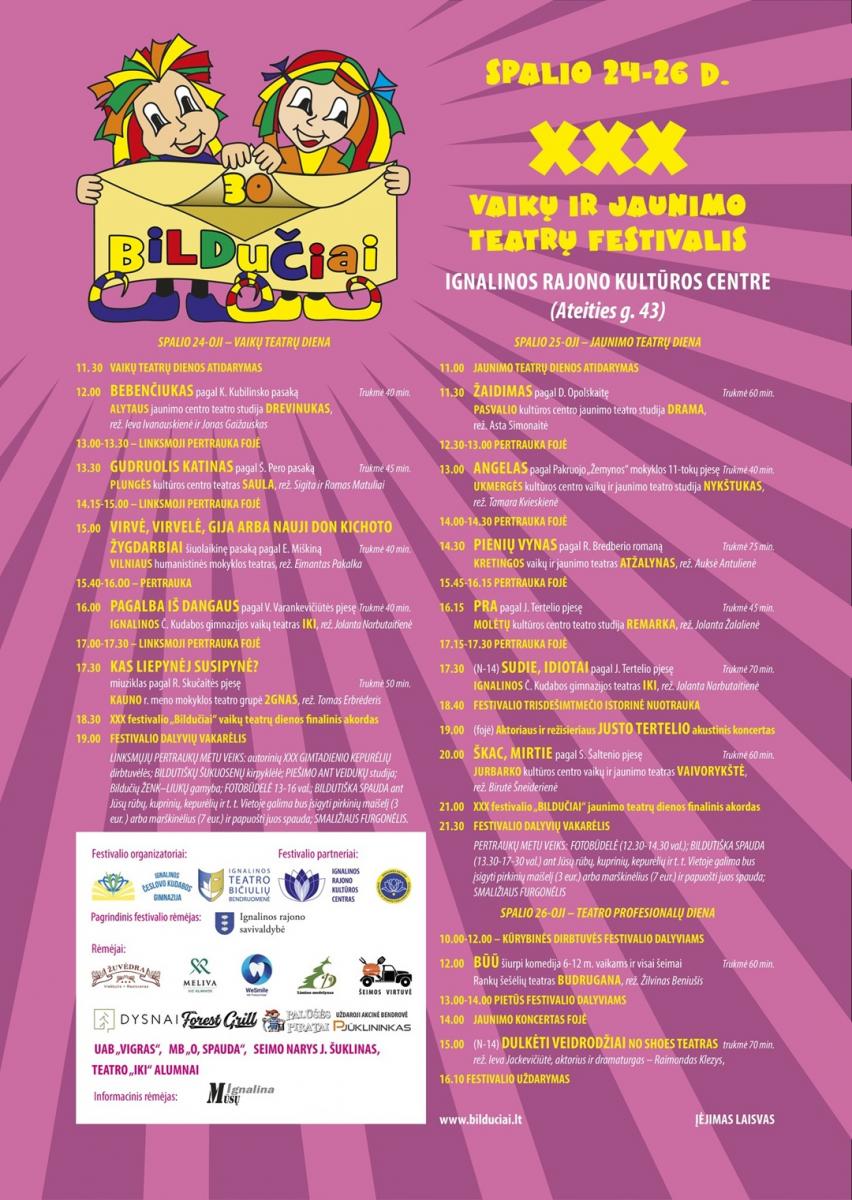 Spalio 24 - 26 d. Ignalinoje - XXX VAIKŲ IR JAUNIMO TEATRŲ FESTIVALIS "BILDUČIAI"!