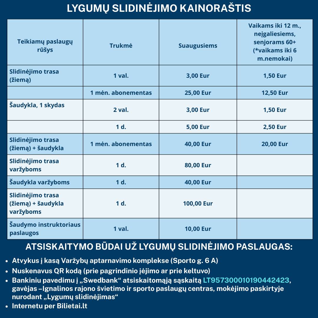 Вся информация о ценах: https://irsspc.lt/ziemos-sporto-centras/